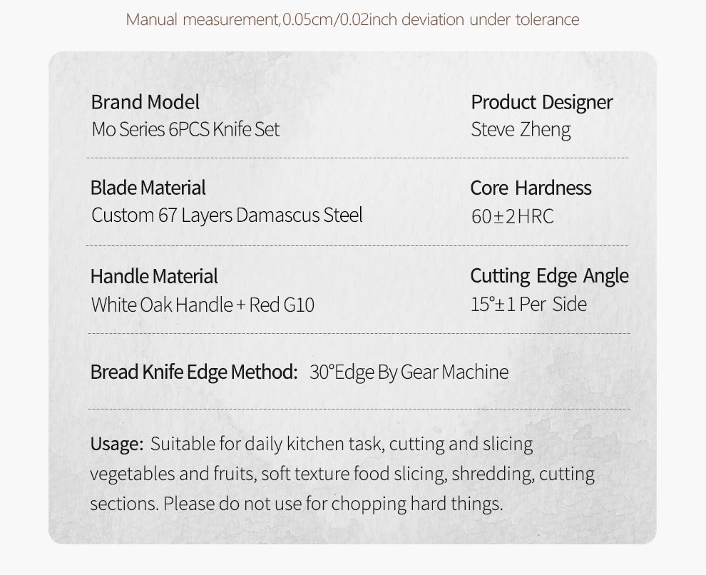 Sharpness level : The level of cutting force: 6.0-8.0 N international standards.